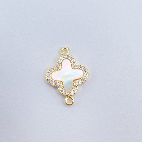 Nania-conector de flor de Latón chapado en oro de 14k de alta calidad, carcasa blanca, accesorios de joyería